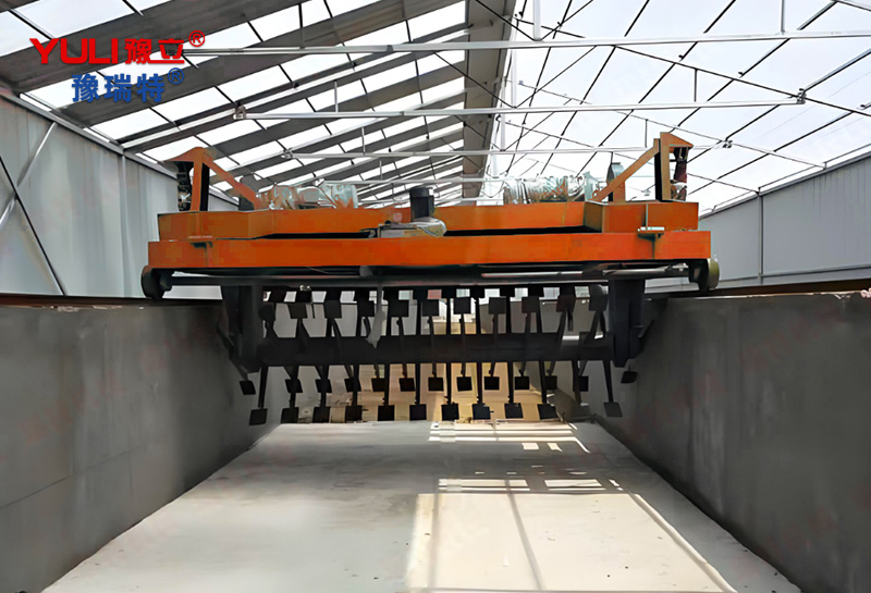 精準(zhǔn)曝氣與控溫:槽底通常鋪設(shè)曝氣管道系統(tǒng),可根據(jù)物料溫度和耗氧量精確控制通風(fēng),這是其發(fā)酵效率遠(yuǎn)高于自然通風(fēng)條垛式的關(guān)鍵。
